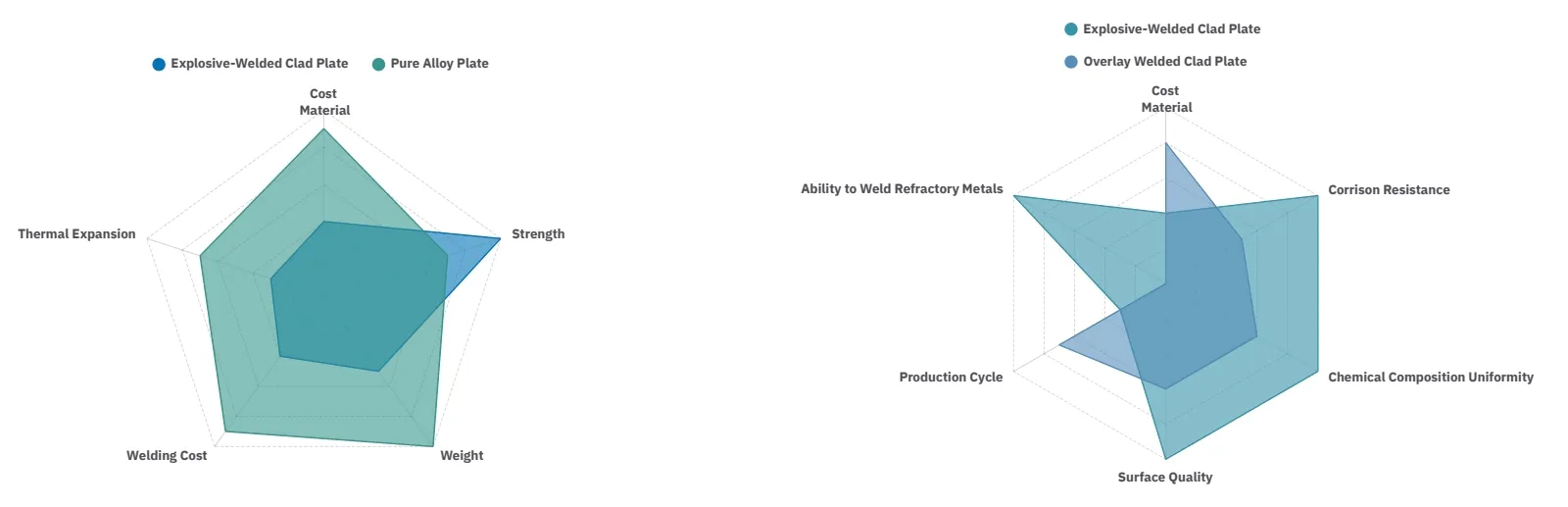 The thickness design of the clad plate base material and cladding, material pairing, and specifications are flexible. They can be diversified according to different environmental requirements and can be produced in single specifications or in bulk.
